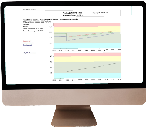 Mit Funktionen kann der Prognoseverlauf jedes Straßenabschnittes unterschiedlich graphisch dargestellt und gedruckt werden.